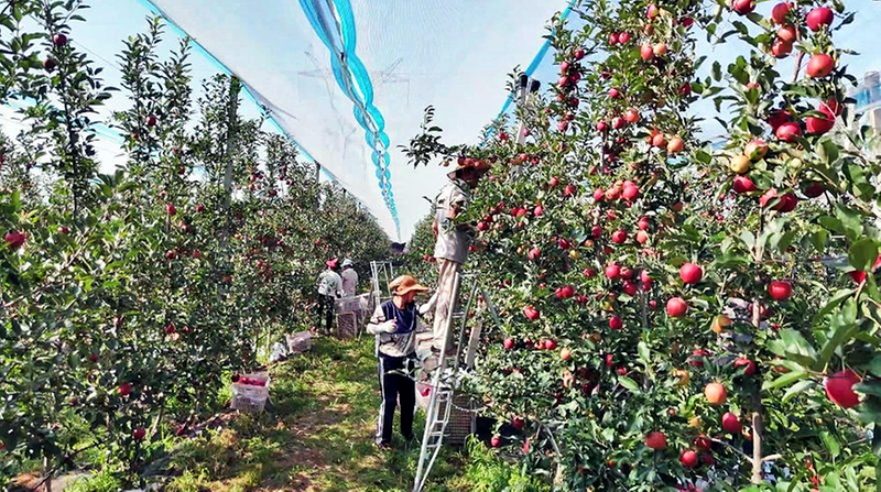“巴克艾”尚未上市就已被各地客商订购一空,果园采用线上线下相结合的销售机制,确保果实价值最大化。除“巴克艾”外,基地种植的秦脆、瑞雪、维纳斯黄金等中晚熟苹果品种,也将在10月陆续上市。