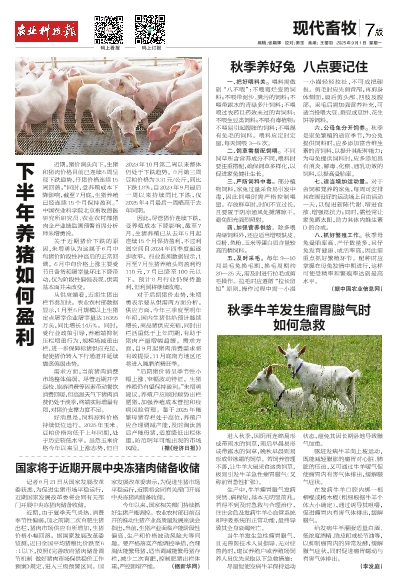 进入秋季,因阴雨连绵易形成带雨水的饲草,雨后早晨易形成带露水的饲草,晚秋早晨则易形成带冰霜的饲草。若饲养管理不善,让牛羊大量采食这类饲草,极易引发牛羊急性瘤胃臌气(又称前胃急性扩张)。
