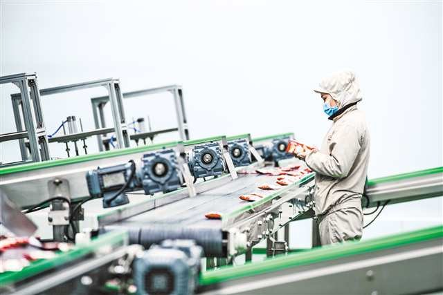 涪陵榨菜集团智能化生产线。 在重庆涪陵区,长江与乌江交汇处的万亩菜田孕育着涪陵榨菜的原料——青菜头。独特的自然禀赋为这一“金字招牌”奠基:北纬30度区位带来110天适宜瘤茎膨大期,侏罗纪紫色土富含硒、钙等微量元素,让青菜头肉质紧实、口感脆嫩。2024年,涪陵青菜头收砍面积73.8万亩,榨菜全产业链产值突破155亿元。