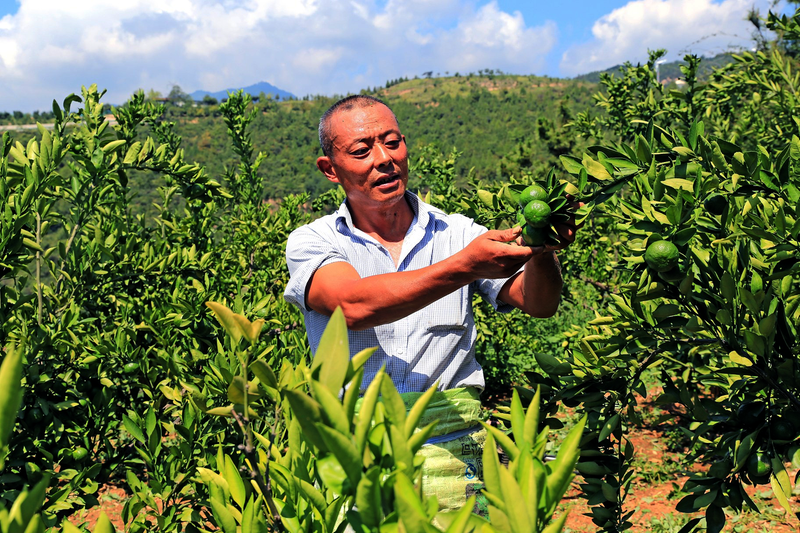 9月1日,陕西省汉中市汉台区河东店镇花果村5000亩褒河蜜桔种植基地里,青果缀满枝头,果农穿梭田间进行精细管护。金秋将至,这片甜蜜产业正孕育着丰收的希望。