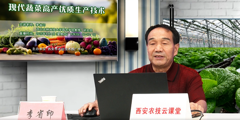 李省印:西北农林科技大学园艺学院研究员,从事蔬菜、瓜类、食用菌抗病育种栽培及其病虫害绿色综合防控技术的科研与推广工作30多年。为中国园艺学会、中国植物保护学会、中国发明协会、陕西省园艺学会、陕西省植物保护学会及陕西省发明协会会员,陕西省西甜瓜产业技术体系植物保护岗位科学家,陕西省“三区人才”专家,陕西省、西安市及咸阳市农业科技特派员,杨凌示范区老年科教工作者协会副会长 9月4日,西北农林科技大学园艺学院研究员、杨凌示范区老年科教工作者协会副会长李省印,以“科技赋能绿色种植,引领蔬菜产业新未来”为主题,通过中国农科新闻网直播间,线上开展《现代蔬菜高产优质生产技术》专题培训。