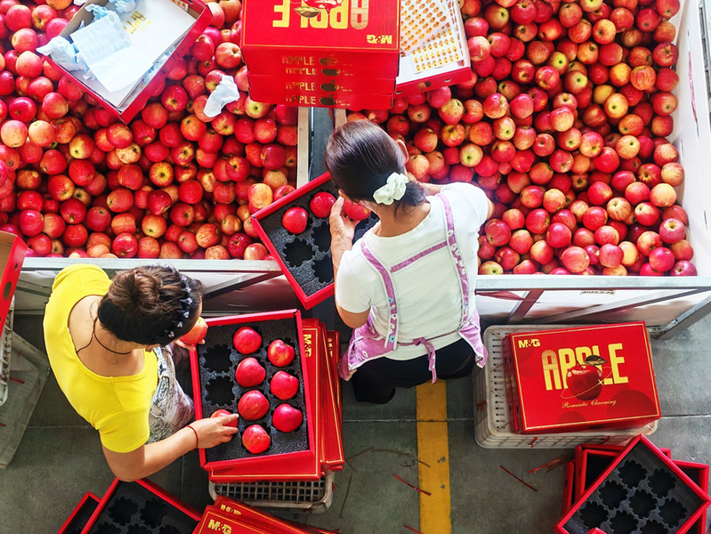 时下,正值早熟苹果销售黄金期。在贵州省威宁彝族回族苗族自治县经济开发区,贵州威宁产投生态果业有限责任公司的分选中心里,工人们正忙着对苹果进行分拣、打包、装箱,随后陆续发往全国各地。