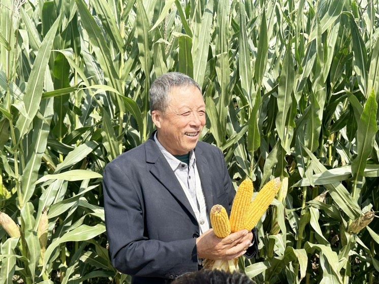 9月23日,农历秋分,第八个中国农民丰收节如期而至。陕西省宝鸡市凤翔区处处洋溢着丰收的喜悦。彪角镇彪角村玉米种植大户王恩强站在自家“吨粮田”旁,手里捧着刚掰下的三个饱满玉米棒,脸上笑开了花:“今年玉米长势好,估计亩产可达650公斤,比去年的633公斤还要高!”
