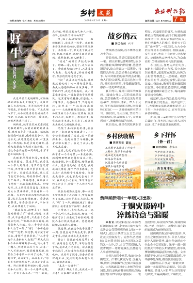 就这样,故乡的云总是无声地陪伴着我们的生活。就在这片云下,大家的生活轨迹盘根错节,日子在一声乡音里拉长,岁月在半生乡情中绵延。