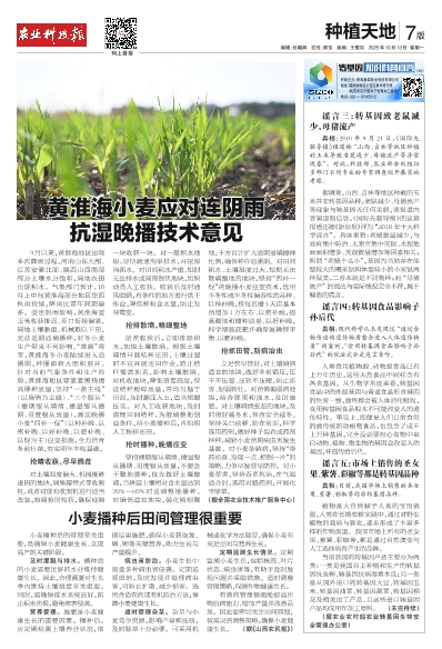 黄淮海小麦应对连阴雨抗湿晚播技术意见