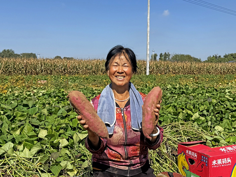 眼下正是红薯集中收获的时节,陕西省府谷县黄甫镇沿黄河各村的红薯地里,翠绿的藤叶铺满田间,村民分工铲秧、刨挖、捡拾、装箱,一派丰收景象。