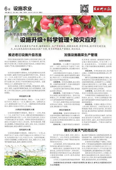 (本版稿件由农业科技报·中国农科新闻网记者董文兰参考《北方蔬菜报》《农村大众》等整理)