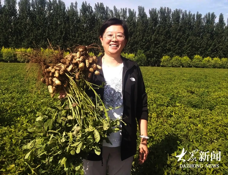 迟晓元手持收获的“花育60”,介绍其突出优点。