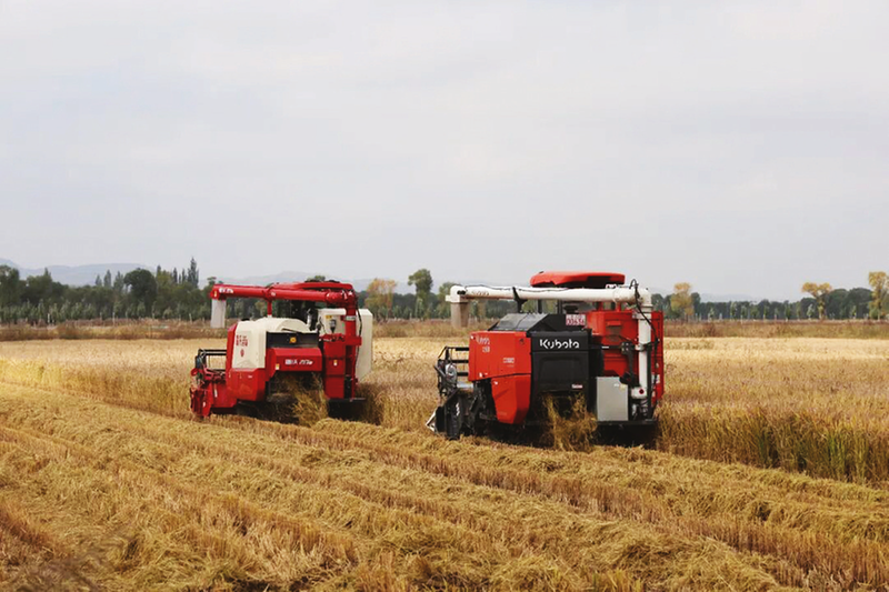 “我们合作社目前有2台收割机、8台拖拉机、3台播种机,为周边村子提供社会化服务。每天收割水稻40亩左右,一亩地收农户70块钱,农机中心给我们每亩补贴25块钱,这样下来既提高了效率,也降低了人工成本。”榆阳区鱼建平农机专业合作社负责人鱼建平说。