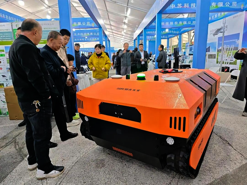 “让一让,机器人赶集喽!”随着一声俏皮的提醒,智慧“铁牛”群踩点入场。打头的是中苏科技股份有限公司带来的苏乐宝果园机器人,它可按平台指令完成精准打药等工作,配备的农事服务App让用户下单后,由专业团队提供打药、除草等服务,形成一套完整的智慧果园整体解决方案。