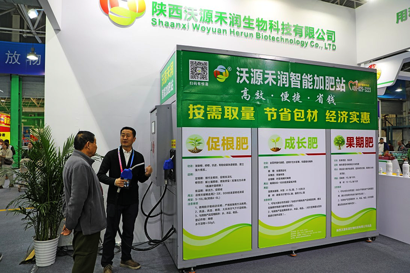 “您看这台设备,农户扫码就能随用随取肥料,就像给汽车加油一样方便。”在第32届杨凌农高会B馆,陕西沃源禾润生物科技有限公司(以下简称“沃源禾润”)的智能加肥站前围满了参观者,公司副总经理阚江涛手持加肥机手柄,边演示操作边向参观农户讲解,屏幕上实时跳动的取肥量与付费数据,让现场农户频频点头。本届农高会以“新质生产力・农业新未来”为主题,汇聚了1800余家企业的创新成果,而沃源禾润带来的“智能加肥+精准施肥”解决方案,正成为践行农业绿色发展的生动注脚。