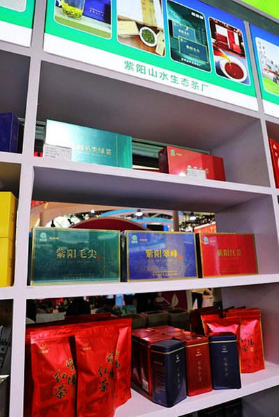 紫阳山水生态茶厂的部分产品 本报讯(农业科技报·中国农科新闻网记者 殷存峰)“来尝尝这刚泡的富硒绿茶,鲜爽回甘!”10月28日,第32届中国杨凌农高会C馆内,陕西安康紫阳山水生态茶厂“品品呗”展位前茶香四溢,副总经理张苗苗一边为客商续茶,一边招呼刚从茶厂赶来增援的员工补货。展位上,印着“全国绿色有机茶”“中国优质茶叶金奖”的奖牌格外醒目。