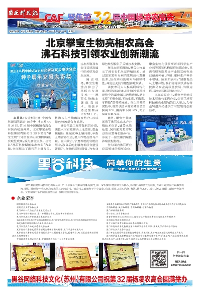 本报讯(农业科技报·中国农科新闻网记者 殷存峰 冯玉龙)10月25日,第32届中国杨凌农高会在陕西杨凌开幕。北京攀宝生物科技集团有限公司(以下简称“攀宝生物”)凭借在沸石应用领域的突破性成果,成为展会焦点。公司以“沸石科技赋能生态农业”为主题,全面展示了沸石在土壤改良、生态养殖及农业可持续发展中的科研及创新应用。