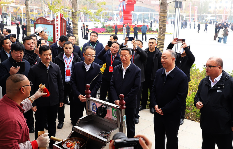 开幕式当天,果业公园主会场内18个展区有序分布:果品展区集中展示优质鲜果与深加工产品;电商直播区里主播热情推介,线上订单持续增加;14个乡镇展区各具特色,体验感十足;品牌包装展区的创新设计与金融保险展区的专项服务,共同展现临猗果业全产业链发展新格局。此外,农机展区的新型设备、非遗文化展区的传统技艺、特色小吃展区的地方美食也吸引众多目光,共同构成“一主多辅、多元互动”的展览格局,生动呈现临猗果业科技赋能、蓬勃发展的新画卷。