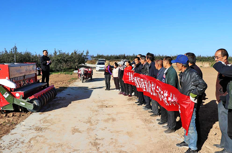 本报讯(通讯员 蔡铁 蔡耀辉)今年入秋以来,渭北旱塬遭遇罕见的持续性降雨天气,导致土壤湿度异常偏高,部分田块积水严重,对小麦适期播种造成较大影响。为有效应对强秋淋天气引发的小麦晚播问题,在国家“十四五”旱农项目支持下,10月31日,农业农村部西北黄土高原作物生理生态与耕作重点实验室主任、陕西省农业节水技术体系岗位专家、西北农林科技大学旱区节水农业研究院副院长任小龙教授,在合阳县甘井镇北张庄村、同堤防村和型庄村三村交界处,开展“旱地冬小麦深松沟播集雨全程机械化技术”示范并进行现场技术培训。合阳县农技推广中心、甘井镇人民政府、西北农林科技大学合阳小麦玉米试验示范站工作人员及甘井镇种植户等100余人参加了技术培训会。本次田间会议主要依托前期建立的千亩连片示范田和70余户技术示范户开展,现场发放种子、化肥等农资及技术培训材料150余份,以实际行动助力渭北旱塬区旱地冬小麦抗逆播种及大面积单产提升。