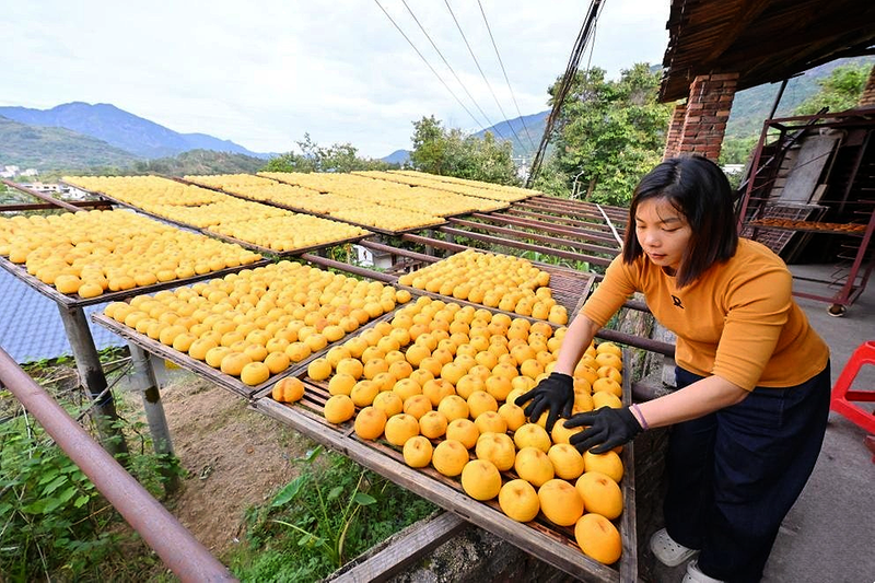 金秋送爽,永泰县梧桐镇迎来了繁忙的柿饼加工时节,人们趁晴好天气,将削皮后的柿子摆在房前屋后晾晒,金灿灿的柿子与村落、青山相映,勾勒出秋日好“丰”景。