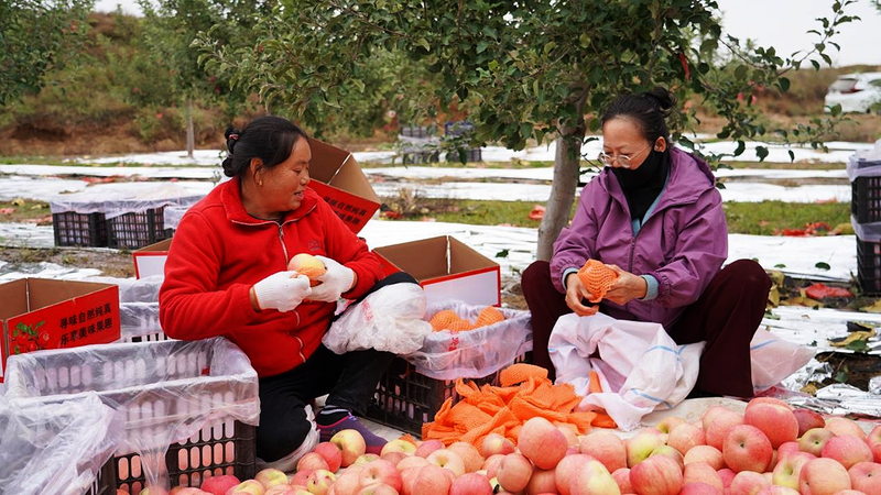 金秋时节,硕果飘香,陕西省榆林市横山区的山间地头尽是丰收景象,漫山的苹果园宛如红色海洋,饱满的果实挂满枝头。在党岔镇杨口则村乡源种养殖专业合作社的苹果园里,果农们穿梭在果树间,忙着采摘、分拣、装箱,脸上洋溢着丰收的喜悦。