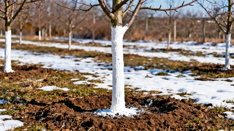 树干涂白。涂白剂配制方法:用生石灰3份、石硫合剂1份、食盐0.5份、水10份。先用少量水将生石灰和盐溶化,石硫合剂用温水溶化,再将石硫合剂倒入石灰液中,最后加足量凉水稀释搅匀即可。幼树涂白高度约1米,较小的苗木品种需在枝条上端保留10—20厘米不涂白。