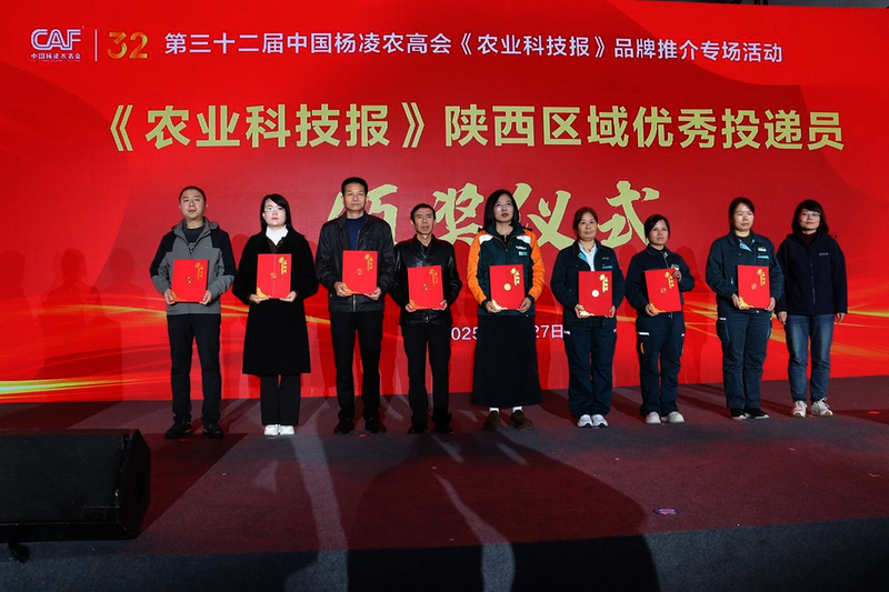 中国邮政集团有限公司陕西省永寿县分公司和凤县分公司荣获2025年度《农业科技报》发行先进单位称号;朱海荣、尚建军、赵安政、何德义、韩红军、高天社、姚博仕、李波、张国锋、郭延红、张秋惠、田喜亮、徐泽江、李育英等被评为优秀读者,现场获颁证书及科技图书;张妮、张慧娟、王宏生、马捻虎、林秀英、殷娟、曹娟维、李文静、陈高群、高小牛、房应平、张东民、曹玉娟、高治雄等被评为优秀投递员,同步获颁荣誉证书。