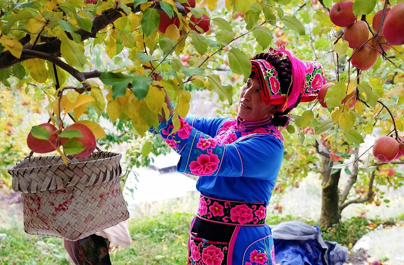 11月20日,四川茂县南新镇安乡村的村民在采摘苹果。