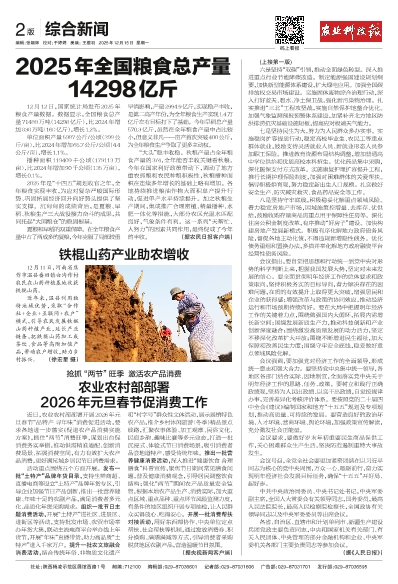 2025年是“十四五”规划收官之年,全年粮食实现丰收,为应对复杂严峻国际形势、巩固拓展经济回升向好势头提供了坚实支撑。沉甸甸的成绩背后,是夏粮、早稻、秋粮生产三大战役接力奋斗的成果,共同托起“大国粮仓”的稳固根基。