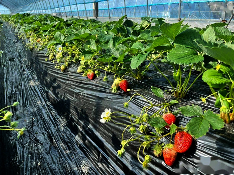 光照管理。冬季光照条件较弱,易影响草莓光合作用与果实发育。应定期清除棚膜表面灰尘与积雪,提升透光率。在确保草莓不受冻害的前提下,尽早揭开棚膜以延长光照时间。如遇连续阴雨雪天气,可采用植物补光灯补充光照,确保每日光照时间不少于8小时。